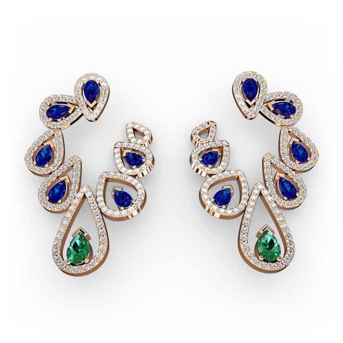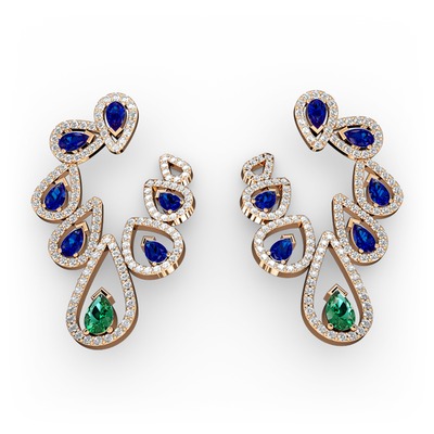 Yeşil kuvars, lab safir ve swarovski 8 ayar rose altın küpe