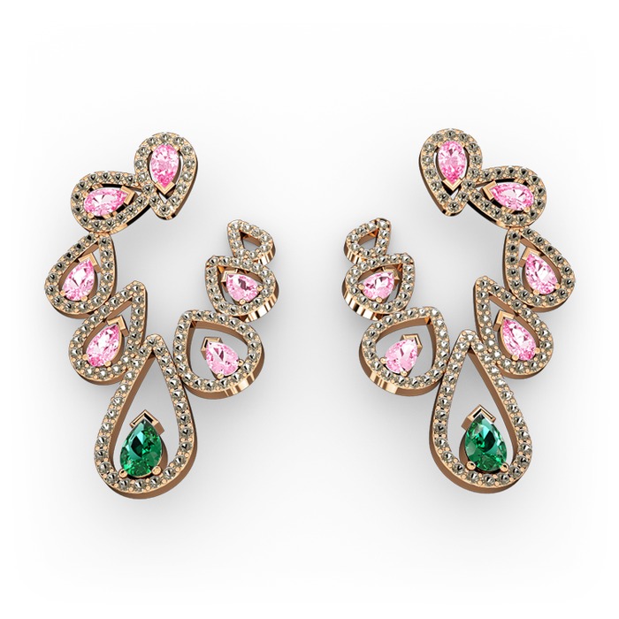 Yeşil kuvars, pembe kuvars ve dumanlı kuvars 8 ayar rose altın küpe