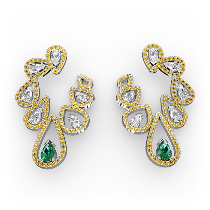 Yeşil kuvars, swarovski ve sitrin 8 ayar beyaz altın küpe