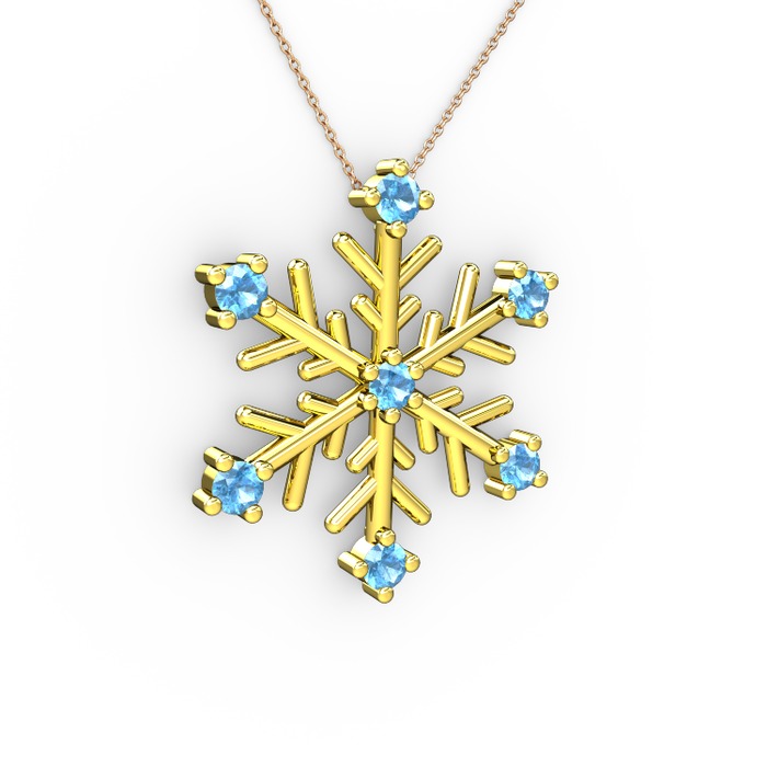 Akuamarin 14 ayar altın kolye (40 cm rose altın rolo zincir)