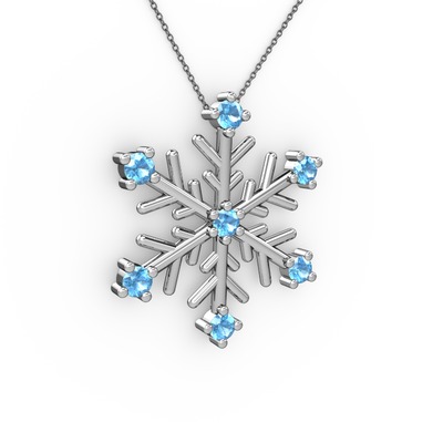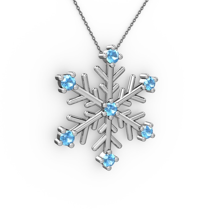 Akuamarin 14 ayar beyaz altın kolye (40 cm gümüş rolo zincir)