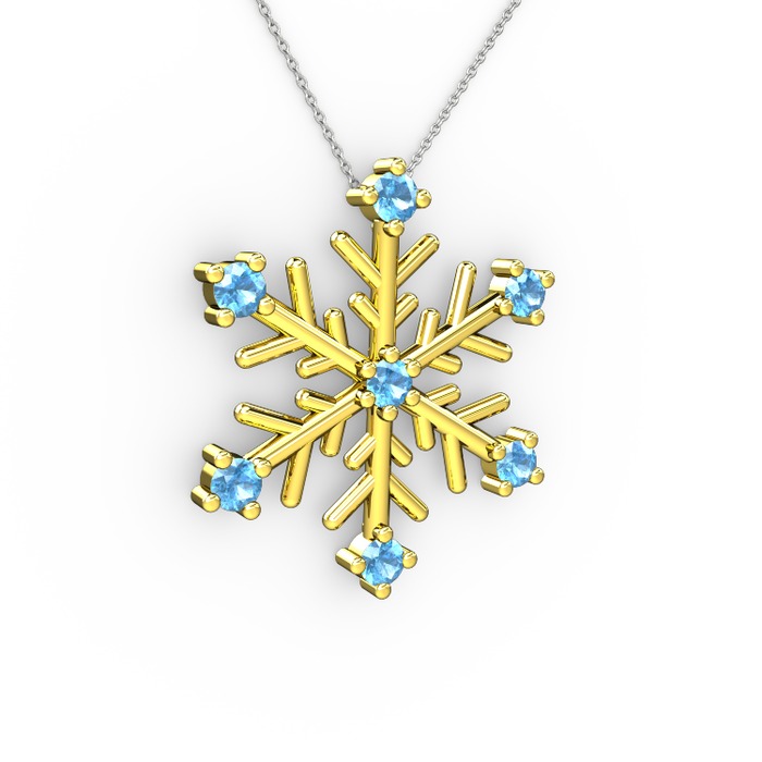 Akuamarin 18 ayar altın kolye (40 cm gümüş rolo zincir)
