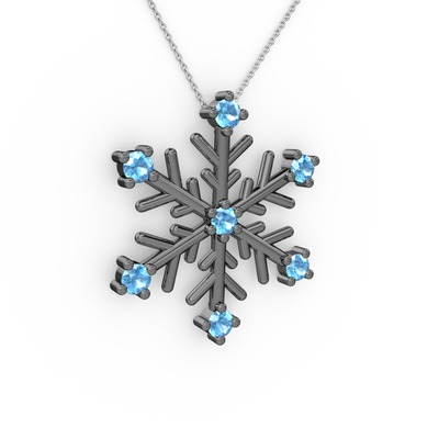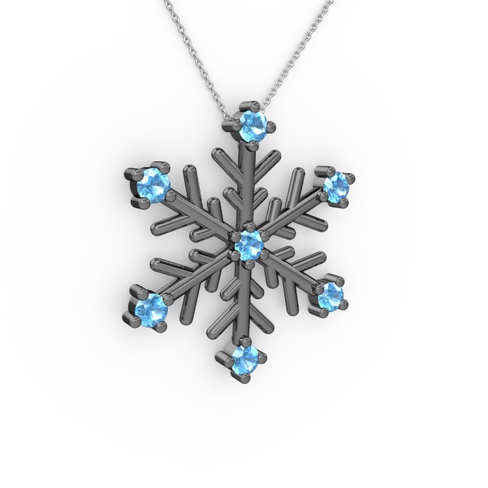 Akuamarin 925 ayar siyah rodyum kaplama gümüş kolye (40 cm beyaz altın rolo zincir)