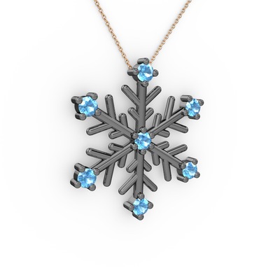 Akuamarin 925 ayar siyah rodyum kaplama gümüş kolye (40 cm rose altın rolo zincir)