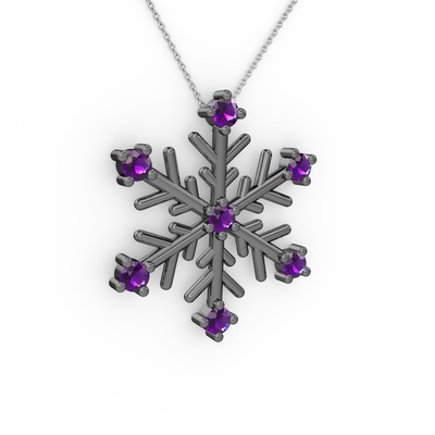 Ametist 925 ayar siyah rodyum kaplama gümüş kolye (40 cm beyaz altın rolo zincir)