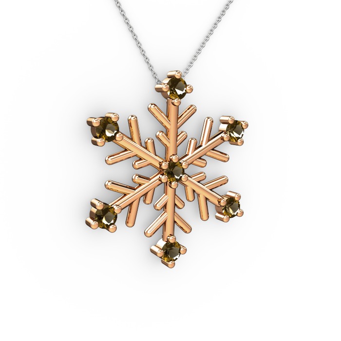 Dumanlı kuvars 14 ayar rose altın kolye (40 cm beyaz altın rolo zincir)