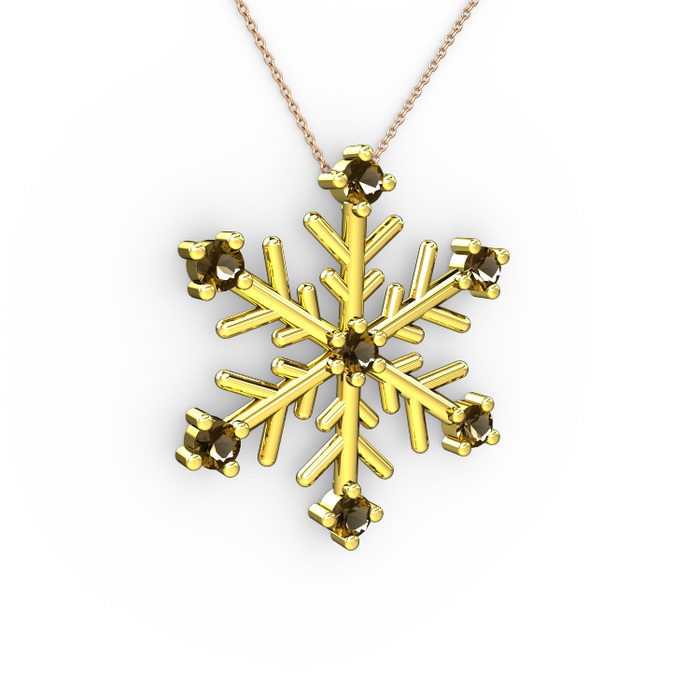 Dumanlı kuvars 8 ayar altın kolye (40 cm rose altın rolo zincir)
