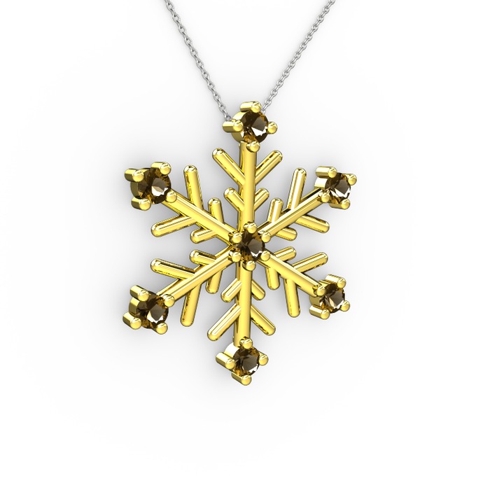 Dumanlı kuvars 925 ayar altın kaplama gümüş kolye (40 cm beyaz altın rolo zincir)