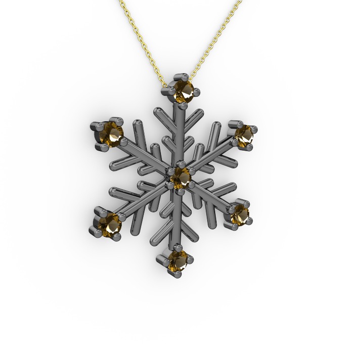 Dumanlı kuvars 925 ayar siyah rodyum kaplama gümüş kolye (40 cm altın rolo zincir)
