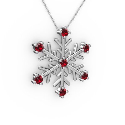 Garnet 14 ayar beyaz altın kolye (40 cm beyaz altın rolo zincir)