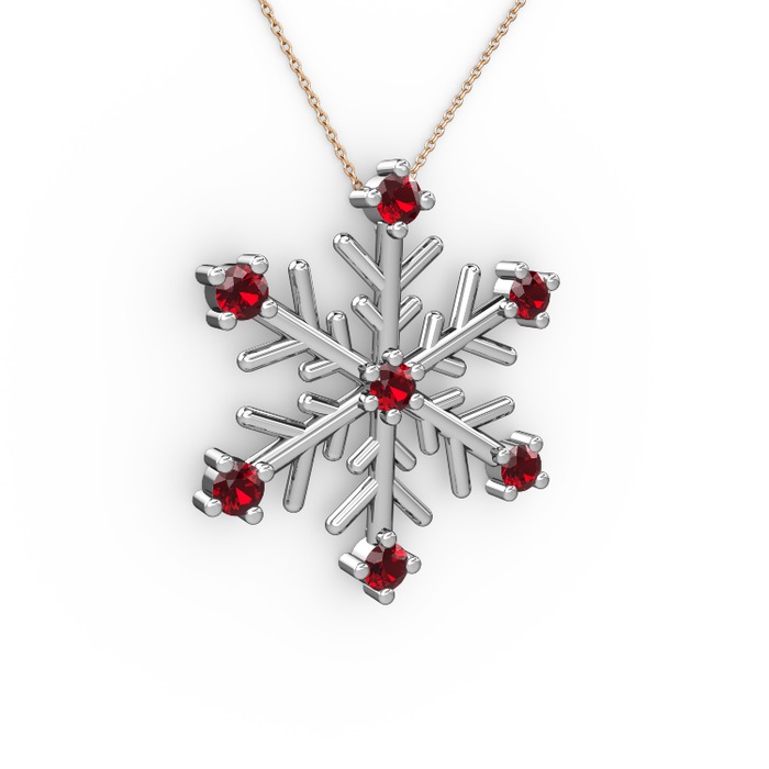 Garnet 18 ayar beyaz altın kolye (40 cm rose altın rolo zincir)