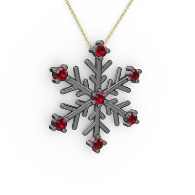 Garnet 925 ayar siyah rodyum kaplama gümüş kolye (40 cm altın rolo zincir)