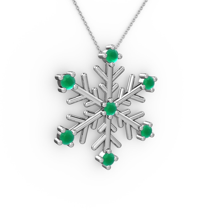 Kök zümrüt 18 ayar beyaz altın kolye (40 cm beyaz altın rolo zincir)