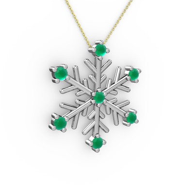 Kök zümrüt 18 ayar beyaz altın kolye (40 cm gümüş rolo zincir)