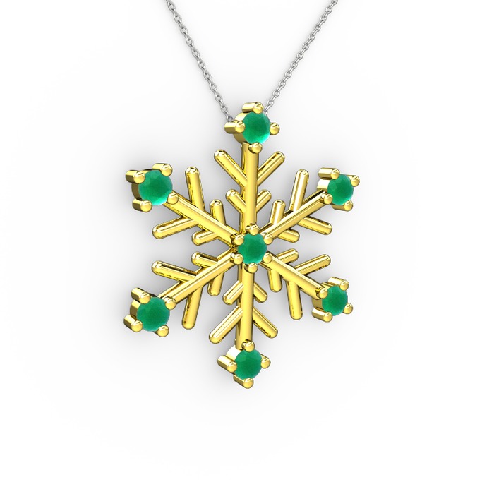 Kök zümrüt 925 ayar altın kaplama gümüş kolye (40 cm beyaz altın rolo zincir)