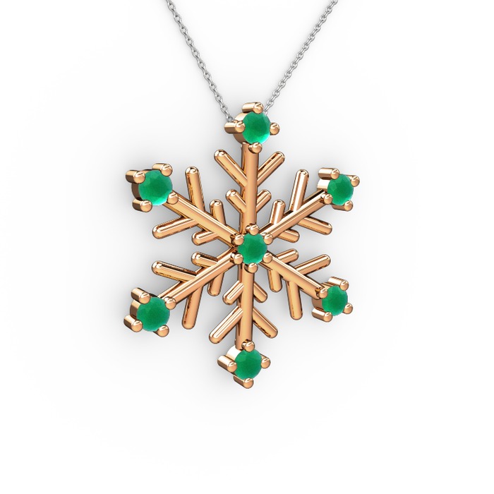 Kök zümrüt 925 ayar rose altın kaplama gümüş kolye (40 cm beyaz altın rolo zincir)