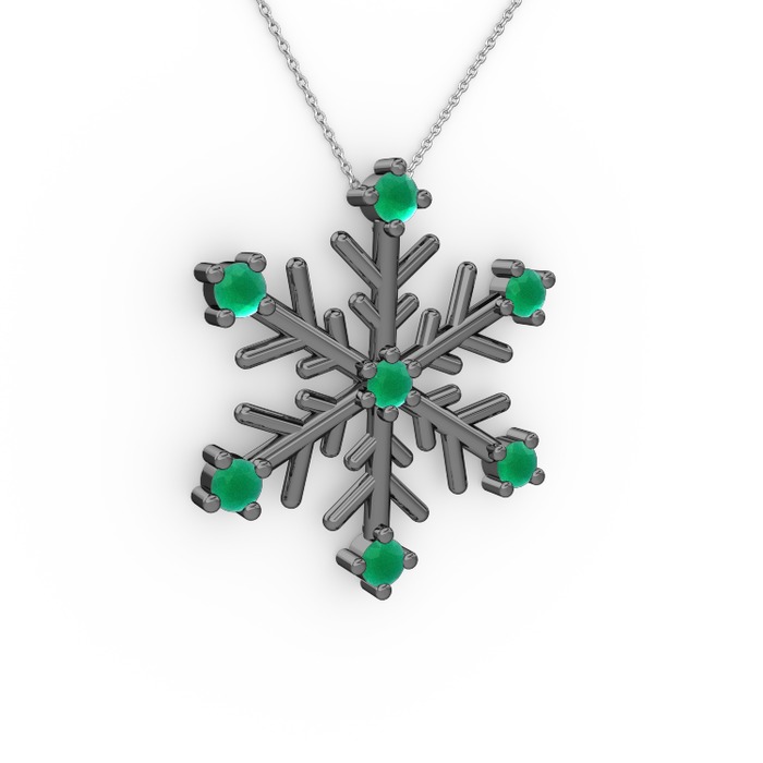 Kök zümrüt 925 ayar siyah rodyum kaplama gümüş kolye (40 cm beyaz altın rolo zincir)