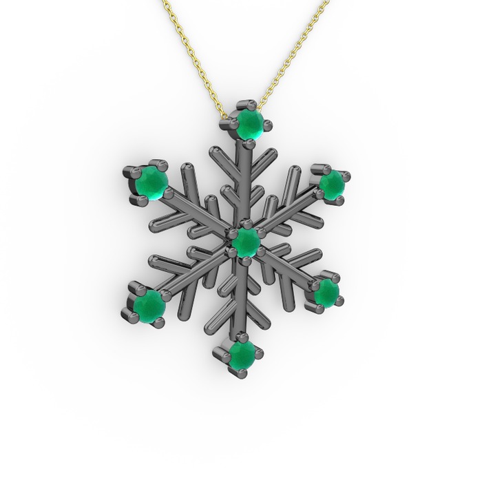 Kök zümrüt 925 ayar siyah rodyum kaplama gümüş kolye (40 cm gümüş rolo zincir)