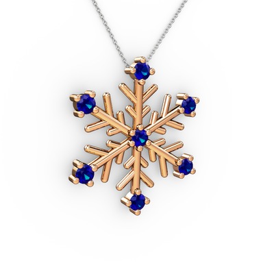 Lab safir 14 ayar rose altın kolye (40 cm beyaz altın rolo zincir)