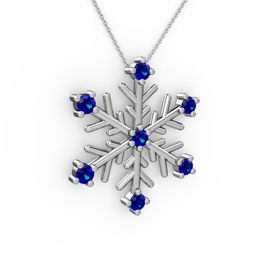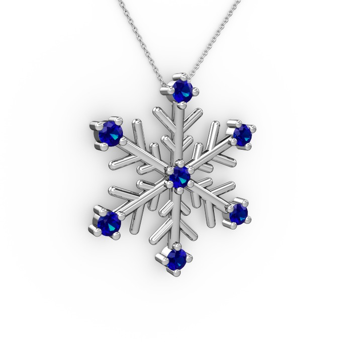 Lab safir 18 ayar beyaz altın kolye (40 cm beyaz altın rolo zincir)