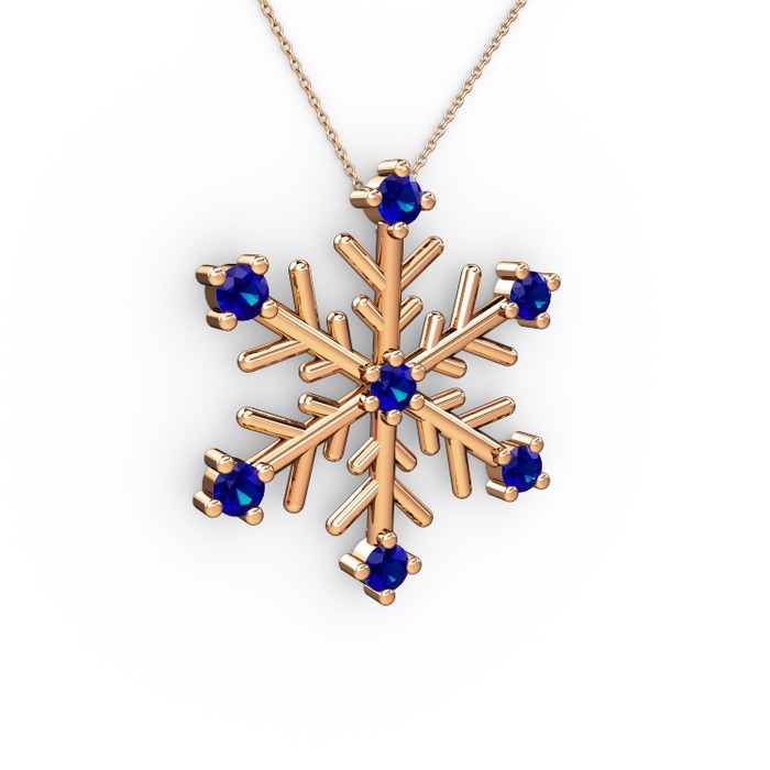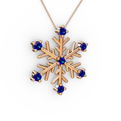Lab safir 925 ayar rose altın kaplama gümüş kolye (40 cm rose altın rolo zincir)