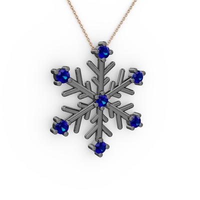 Lab safir 925 ayar siyah rodyum kaplama gümüş kolye (40 cm rose altın rolo zincir)