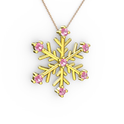 Pembe kuvars 18 ayar altın kolye (40 cm rose altın rolo zincir)