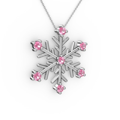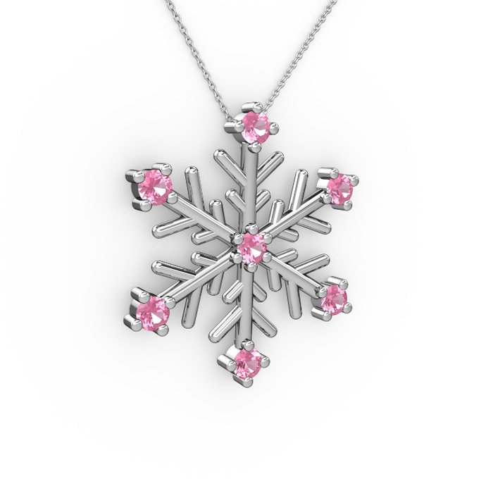 Pembe kuvars 18 ayar beyaz altın kolye (40 cm gümüş rolo zincir)