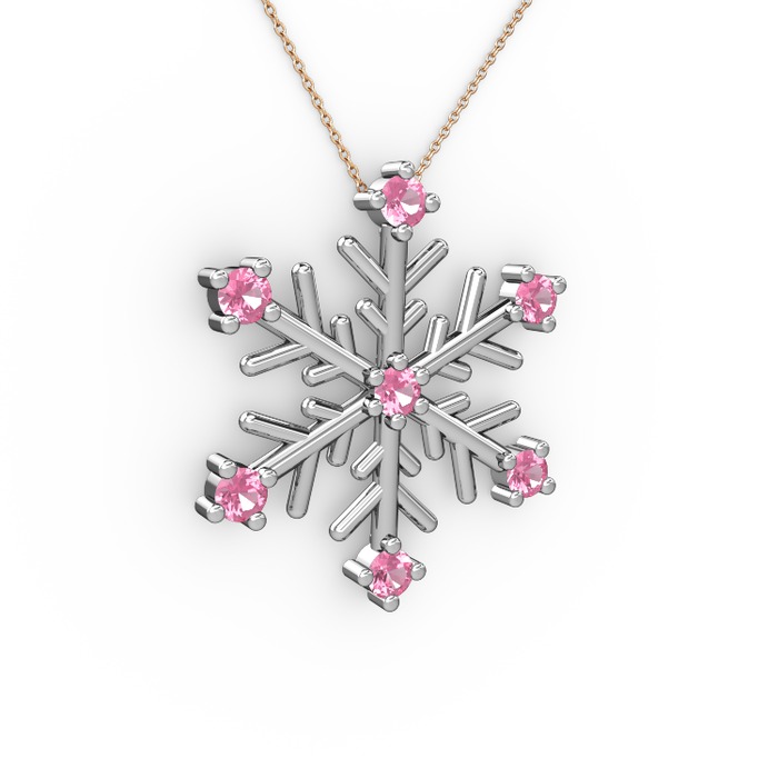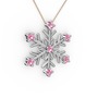Pembe kuvars 8 ayar beyaz altın kolye (40 cm rose altın rolo zincir)