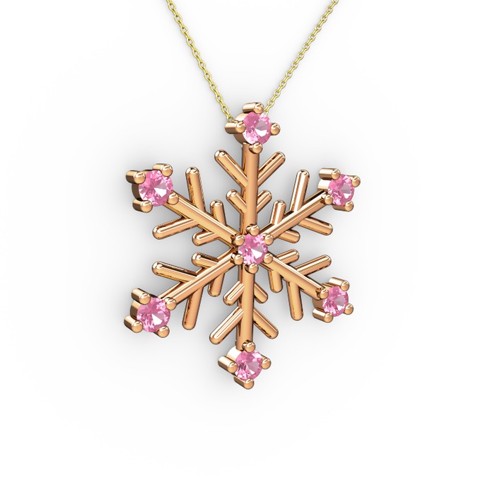 Pembe kuvars 8 ayar rose altın kolye (40 cm gümüş rolo zincir)