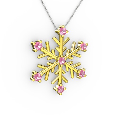 Pembe kuvars 925 ayar altın kaplama gümüş kolye (40 cm beyaz altın rolo zincir)
