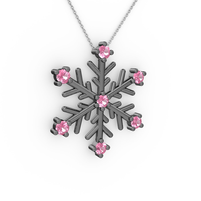 Pembe kuvars 925 ayar siyah rodyum kaplama gümüş kolye (40 cm gümüş rolo zincir)