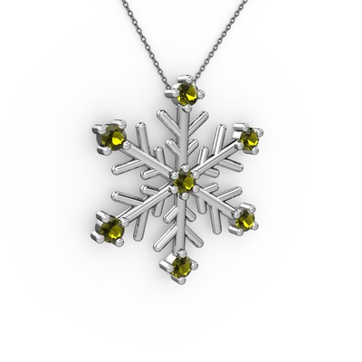 Peridot 8 ayar beyaz altın kolye (40 cm gümüş rolo zincir)