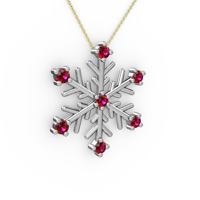 Rodolit garnet 18 ayar beyaz altın kolye (40 cm altın rolo zincir)