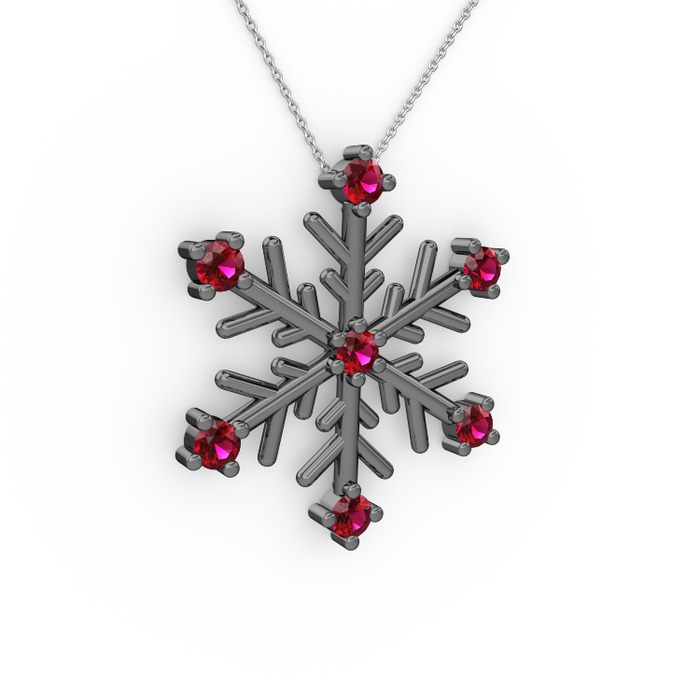 Rodolit garnet 925 ayar siyah rodyum kaplama gümüş kolye (40 cm beyaz altın rolo zincir)