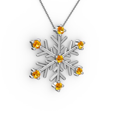 Sitrin 8 ayar beyaz altın kolye (40 cm gümüş rolo zincir)
