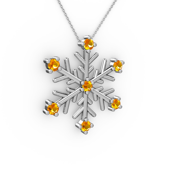 Sitrin 925 ayar gümüş kolye (40 cm beyaz altın rolo zincir)
