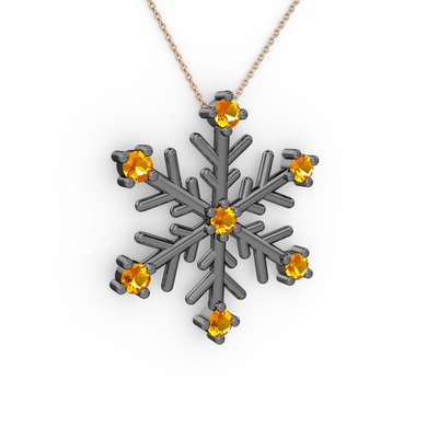 Sitrin 925 ayar siyah rodyum kaplama gümüş kolye (40 cm rose altın rolo zincir)