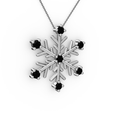 Siyah zirkon 14 ayar beyaz altın kolye (40 cm gümüş rolo zincir)