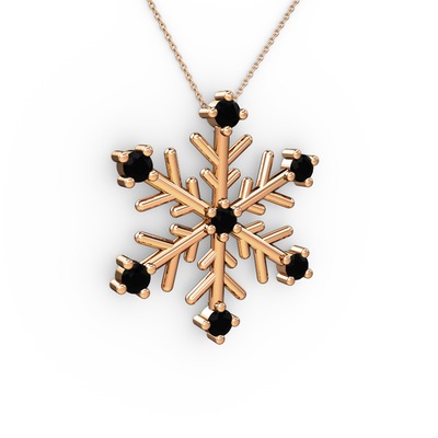 Siyah zirkon 14 ayar rose altın kolye (40 cm rose altın rolo zincir)