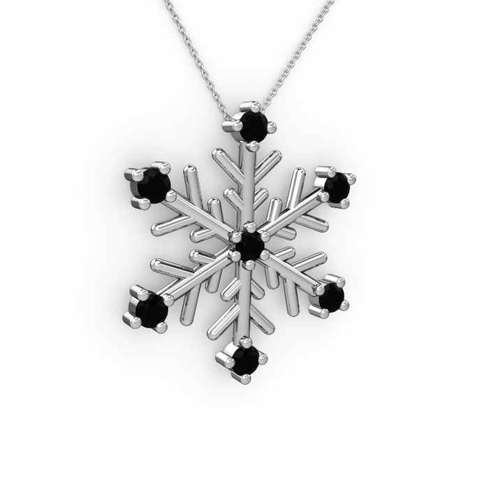 Siyah zirkon 8 ayar beyaz altın kolye (40 cm beyaz altın rolo zincir)