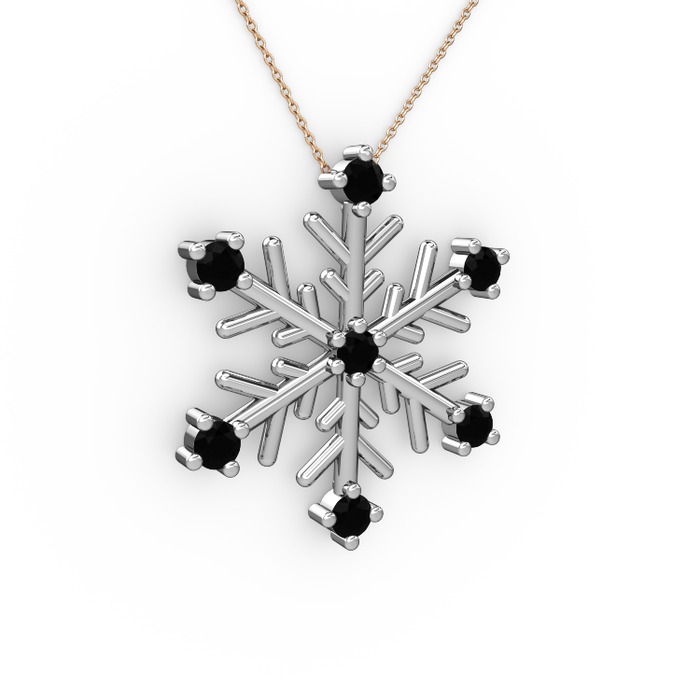 Siyah zirkon 8 ayar beyaz altın kolye (40 cm gümüş rolo zincir)