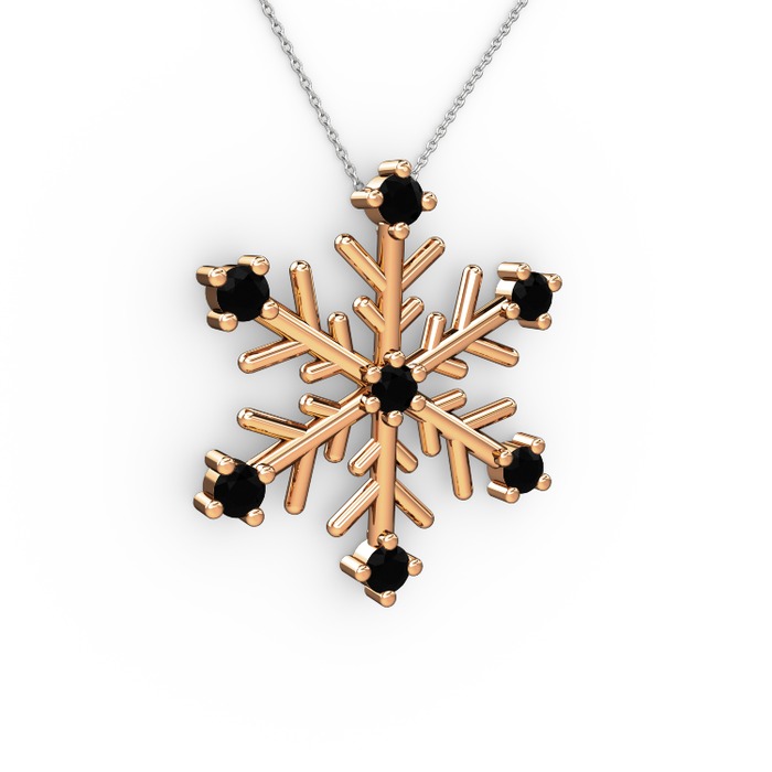 Siyah zirkon 8 ayar rose altın kolye (40 cm beyaz altın rolo zincir)