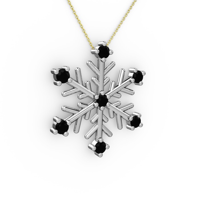 Siyah zirkon 925 ayar gümüş kolye (40 cm altın rolo zincir)