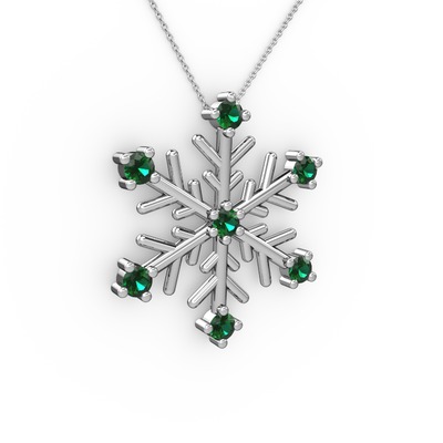 Yeşil kuvars 14 ayar beyaz altın kolye (40 cm beyaz altın rolo zincir)