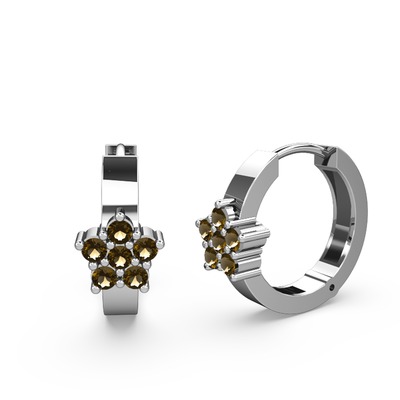 Dumanlı kuvars 14 ayar beyaz altın küpe