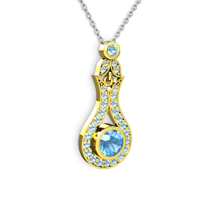 Akuamarin 14 ayar altın kolye (40 cm beyaz altın rolo zincir)