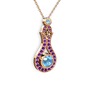 Akuamarin ve ametist 8 ayar rose altın kolye (40 cm gümüş rolo zincir)