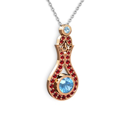 Akuamarin ve garnet 925 ayar rose altın kaplama gümüş kolye (40 cm beyaz altın rolo zincir)