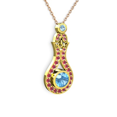 Akuamarin ve kök yakut 18 ayar altın kolye (40 cm rose altın rolo zincir)